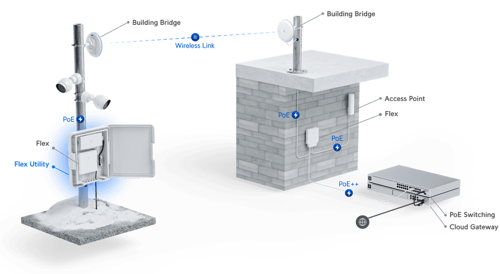 Ubiquiti Flex Utility SKU: USW-Flex-Utility The Switch Flex Utility is an outdoor weatherproof enclosure designed for use with the Switch Flex. Tech Specs: Click Here Features: •Outdoor weatherproof enclosure •Max. PoE budget 46W •Clean cable management and screw lock for security •Includes an Ethernet patch cable and a 60W PoE adapter •Compatible with Switch Flex